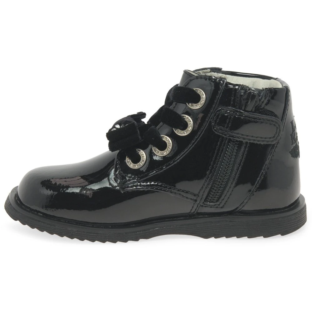 The Lelli Kelly Camille LK girl’s boots feature a durable and flexible design with shiny patent leather uppers and a soft textile lining to ensure feet are protected and snug during active days.