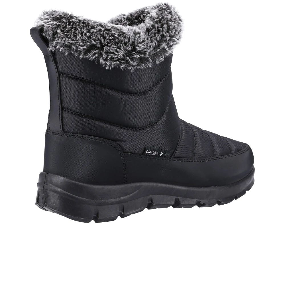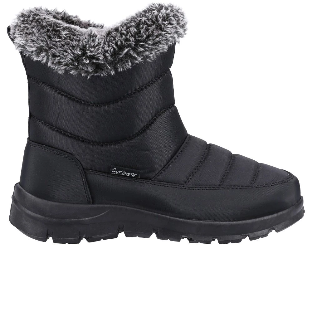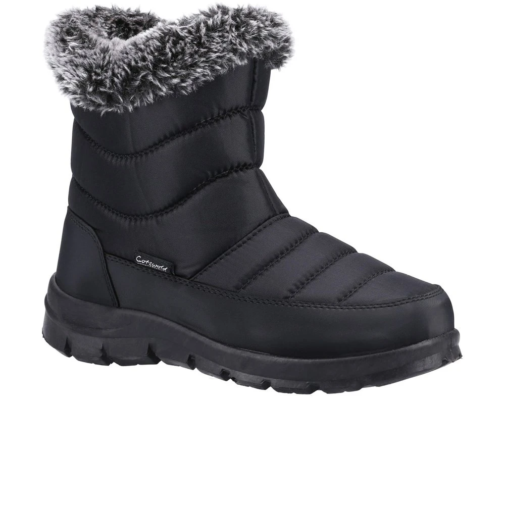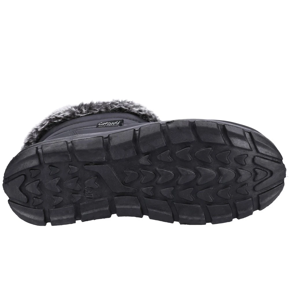 Fleece lined hybrid snow boot with waterproof rubber galosh and side zip for easy use.