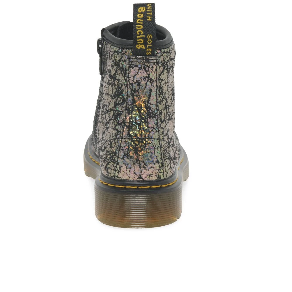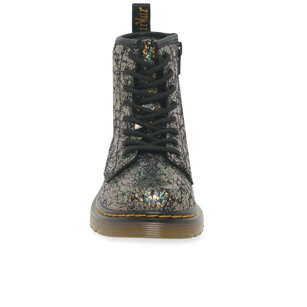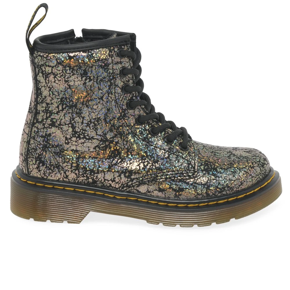 Dr Martens 1460 junior girl’s boots combine durable leather uppers with shock-absorbing soles for all-day comfort. These durable boots boast an attractive design, taking a modern spin on the classic style with iridescent uppers, while keeping feet protected all day long.
