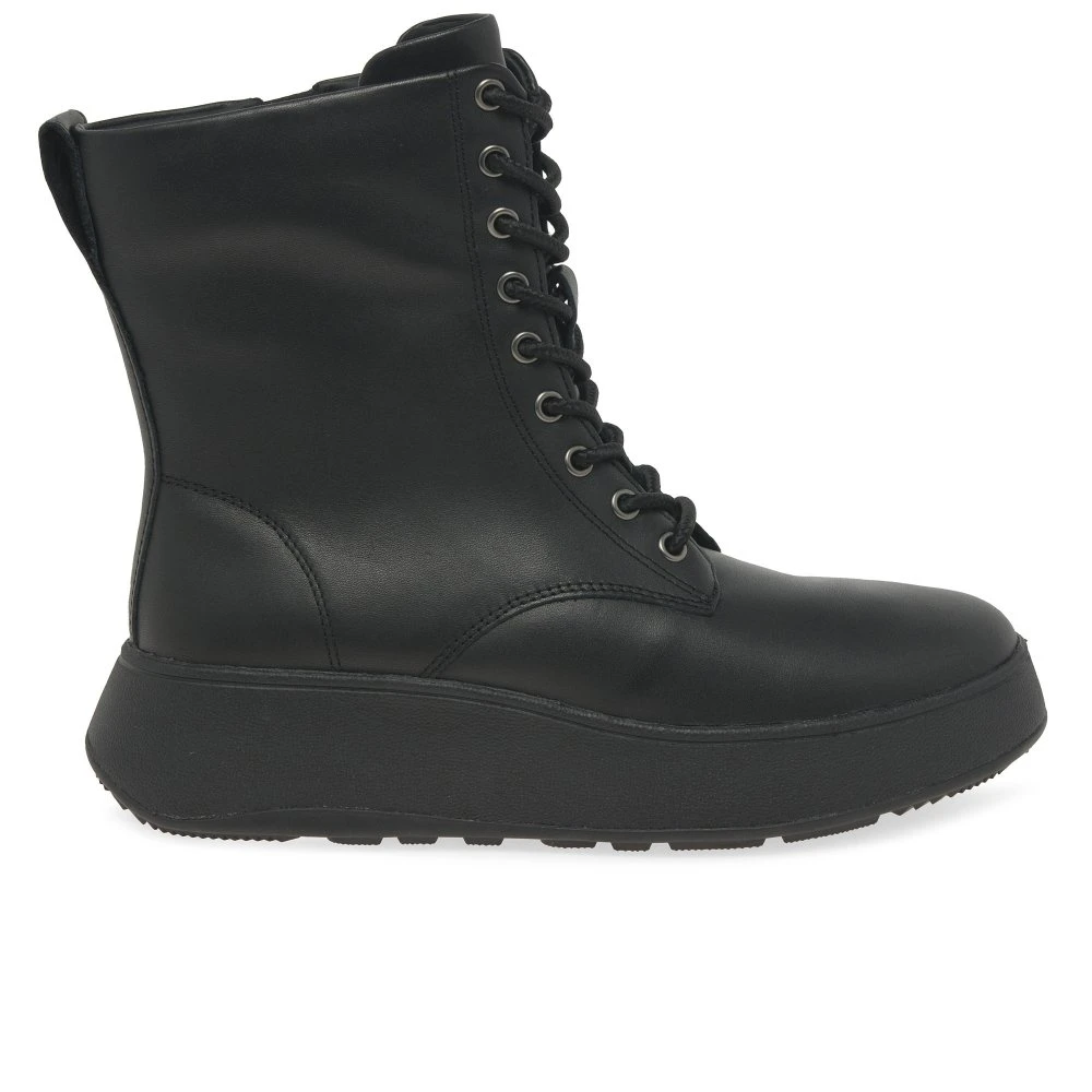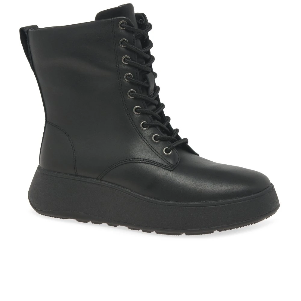 A modern take on a classic biker boot style, the FitFlop F-Mode Lace Up boots features soft leather uppers sat atop an on trend chunky sole. Dual fastenings of full lace up front and inside side zip allow for an easy on and off, whilst Microwobbleboard™ midsoles deliver ultimate comfort and cushioning.