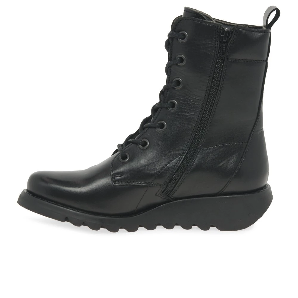 With soft leather uppers and statement sole, the Fly London Silf women’s boots feature soft leather uppers and lace fastenings for all day comfort and support.