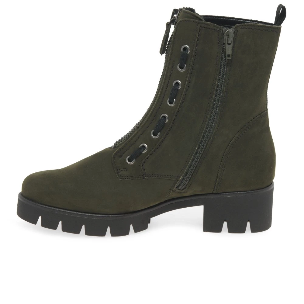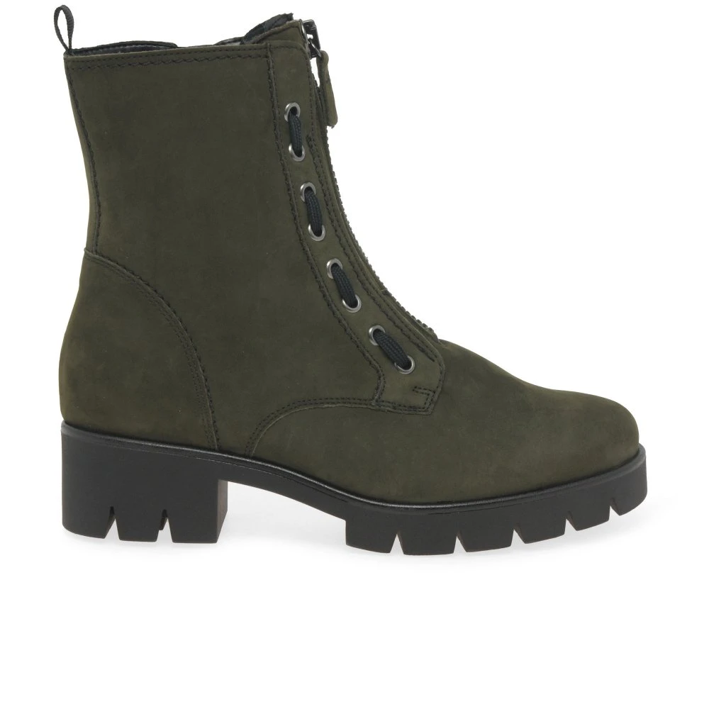 With a sleek leather or nubuck upper, the Gabor Banter women’s ankle boots feature a zip at the front and eyelet embellishments with laces for an edgy look. Banter can be secured with an inside zip and features a rear pull tab for an easy on and off fit.