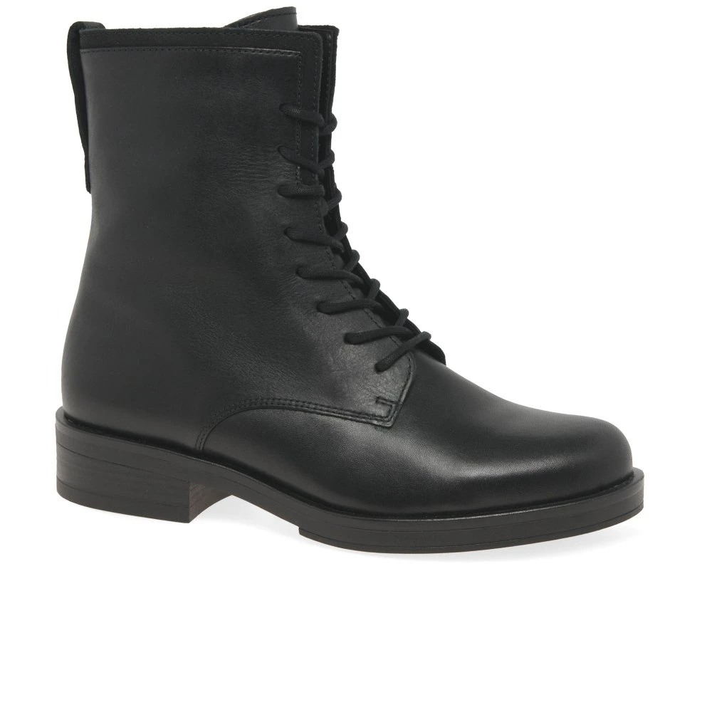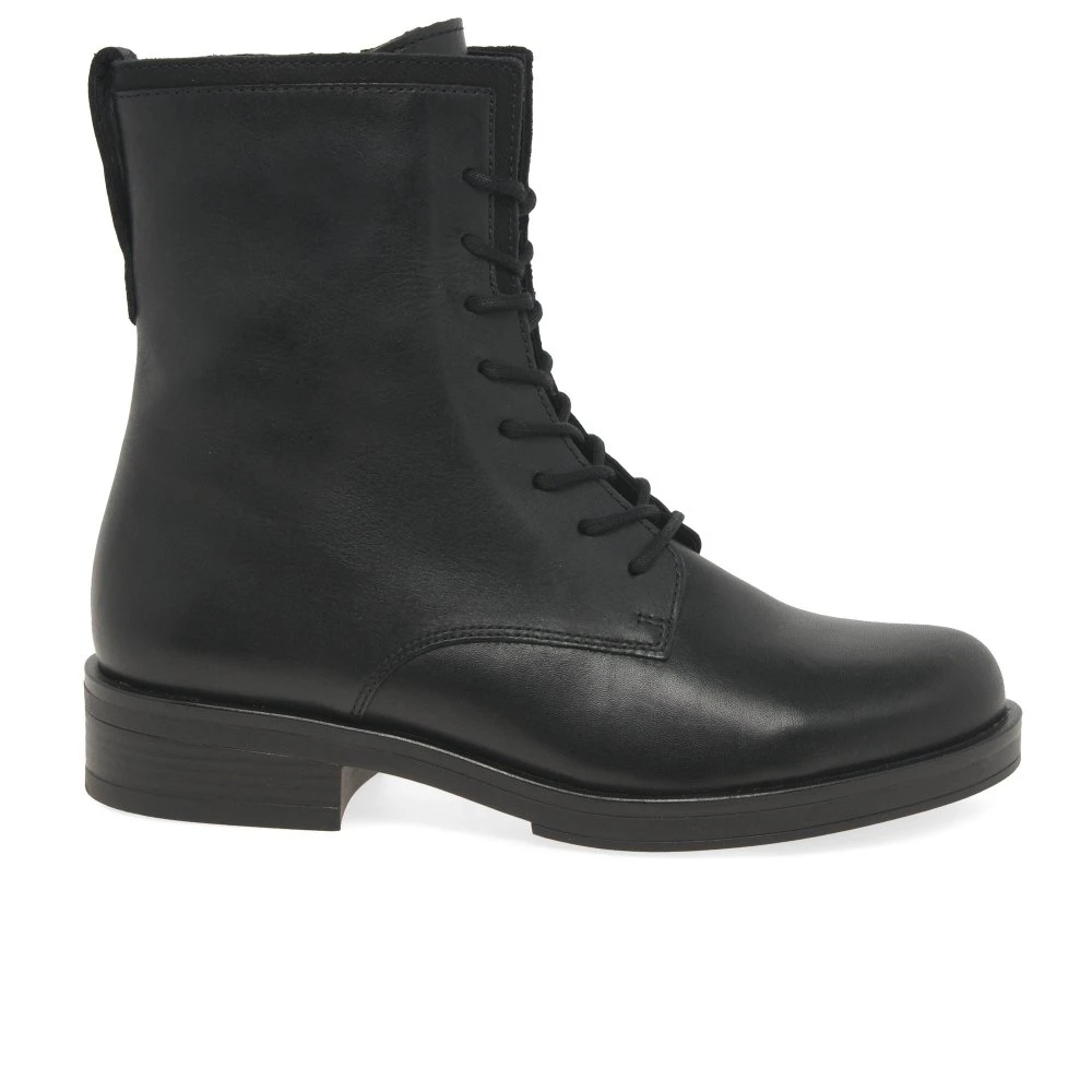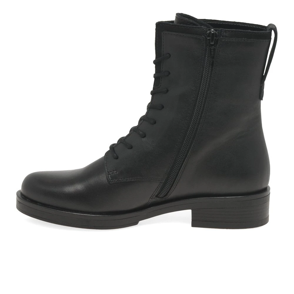 Following a classic biker boot style, the Gabor Hay women’s boots feature glossy patent uppers on a small block heel. Dual fastenings of laces and inside zip ensures a secure fitting, whilst removable insoles ensures all day comfort.