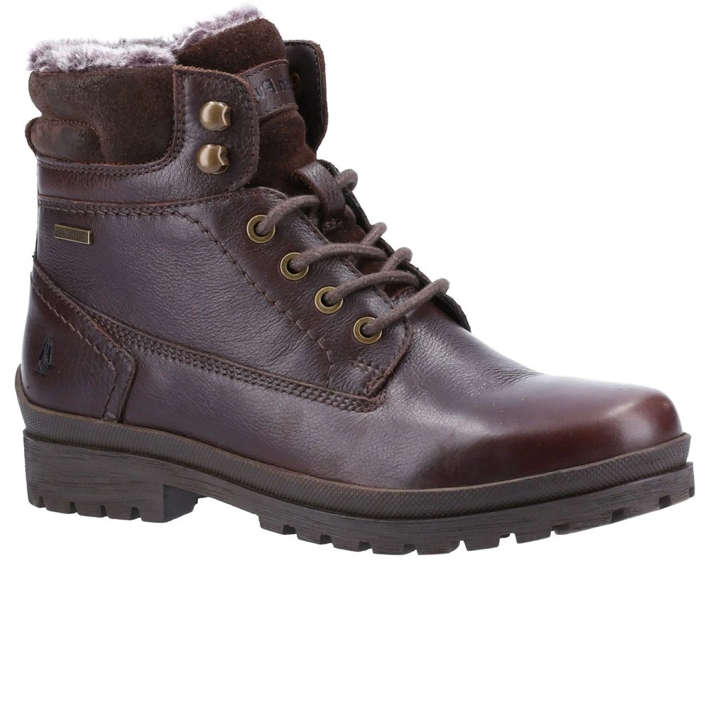 Womens Annay Boot from Hush Puppies. Made with waterproof real leather upper and a contrasting suede padded collar, the Annay boot has a cosy faux fur fleece lining and a flexible yet hardwearing rubber sole.