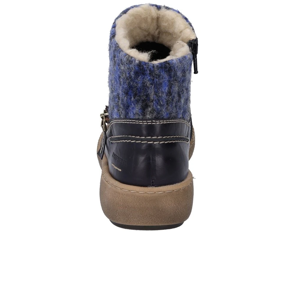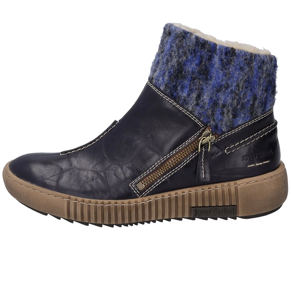 JOSEF SEIBEL Maren 22. A distinctive ladies leather ankle boot with textured knit collar and plush warm linings. Featuring side zip for an adjustable and secure fit. Its chunky and sturdy sole makes this boot perfect for outdoor exploring.