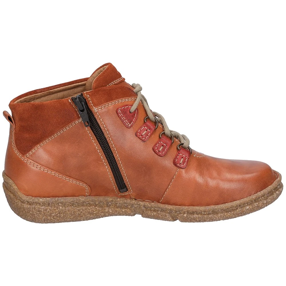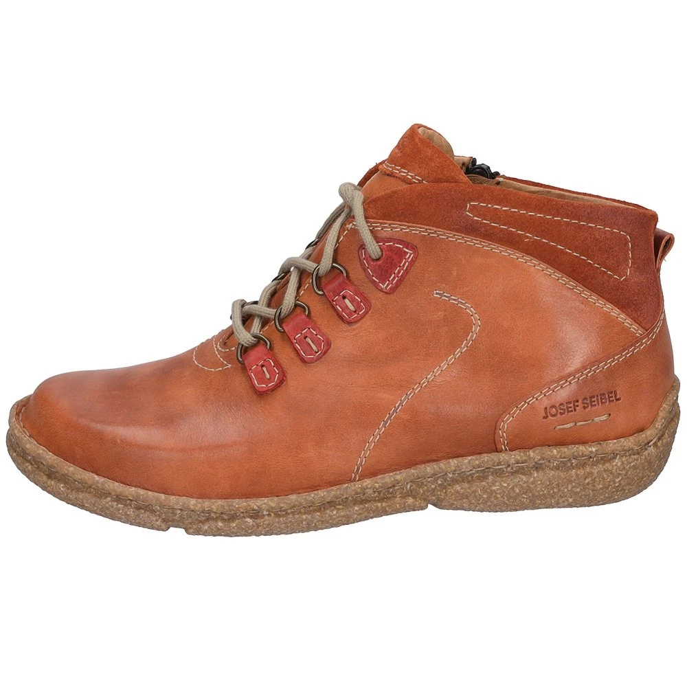 This ladies casual ankle boot has comfort credentials that will keep you on your feet all day long. Finished in soft supple leather with contrasting lace-eyelets and suede cuff to give this style a distinct look. JOSEF SEIBEL Neele 57 has a soft, cushioned removable footbed, and plenty of padding incorporated for added comfort around your ankle. Sitting atop a lightweight, durable and flexible hand-stitched natural finished sole and finished with contrasting lace. Feeling comfortable never looked so good!