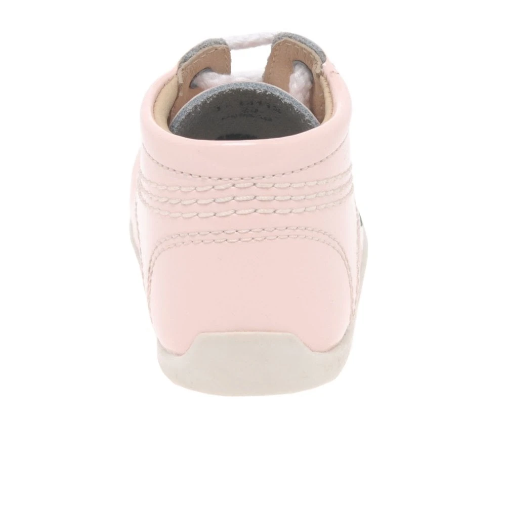 Tiny tots will love the comfortable fit of the Kickers Baby Chi booties in soft pink patent leather. Sweet and simple, these lace-fastening boots are complete with white soles and stitching, with iconic red and green Kickers tabs to the quarters.