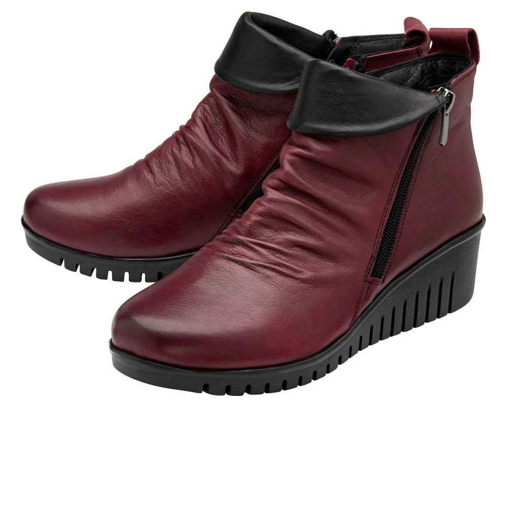 Crafted from premium leather the Lotus Cordelia ankle boot is the perfect accompaniment to casual looks. This women’s boot is understated with just subtle ruche detailing on the upper, an exposed side zip and a turn down collar. Resting on a 4.5cm wedge heel this women’s ankle boot is exceptionally comfortable and a delight to wear.
