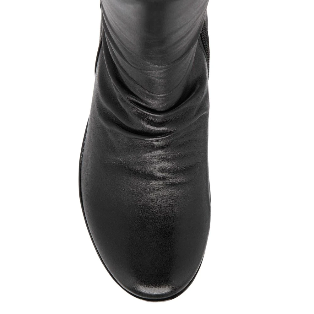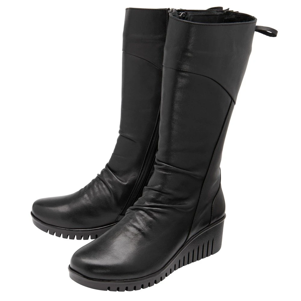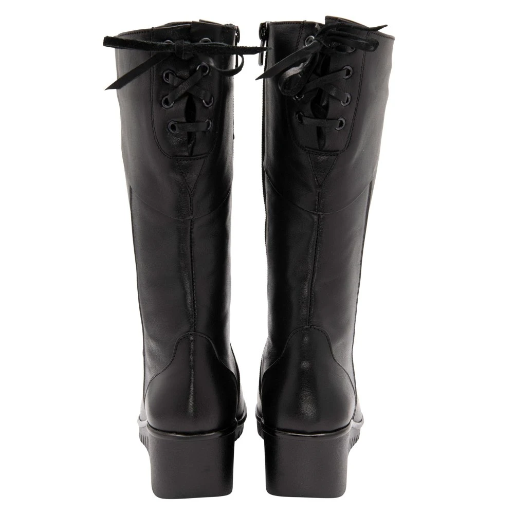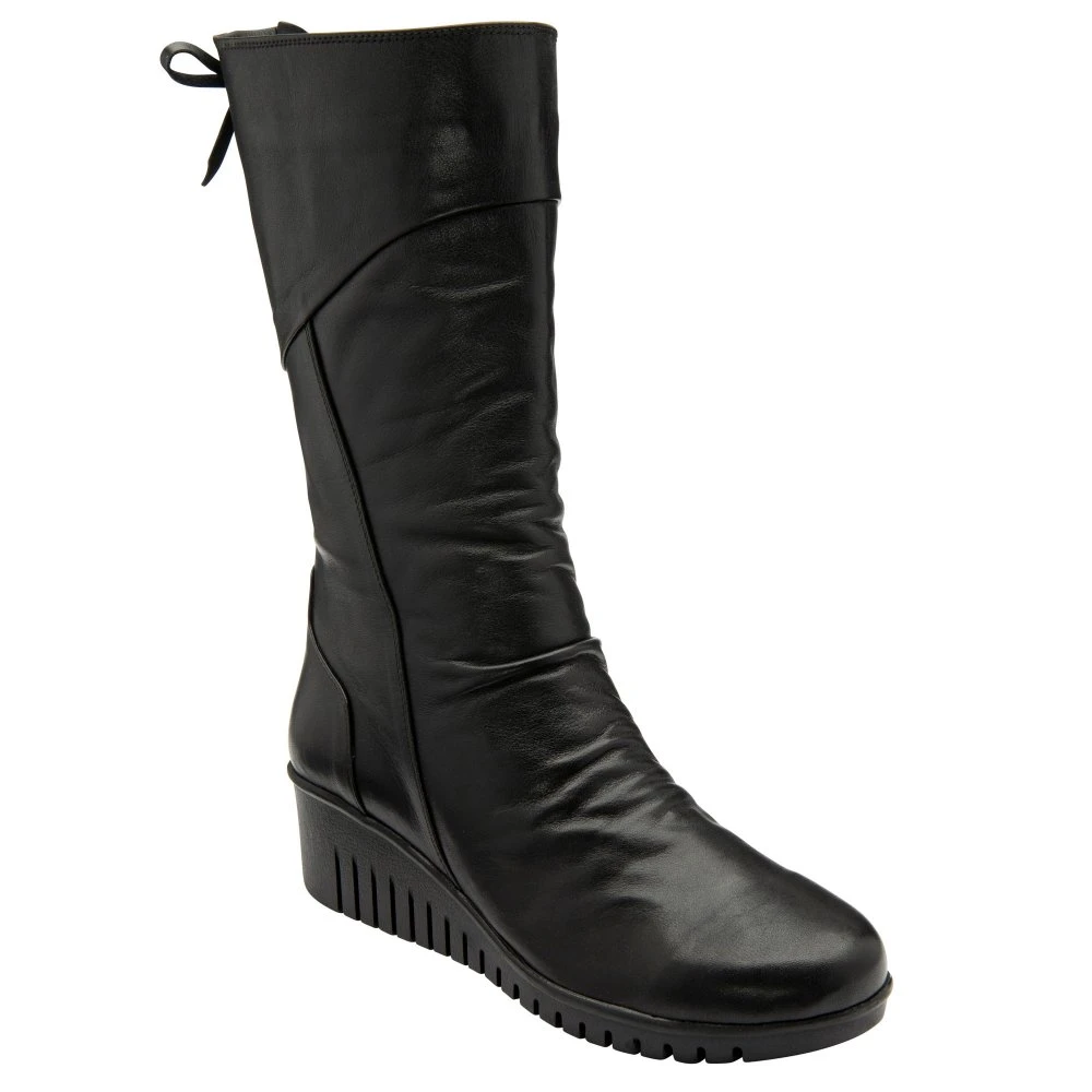 Crafted from premium leather the Lotus Dara women’s mid-calf boot is the perfect accompaniment to a wealth of looks. This women’s Lotus boot is understated with just subtle ruche detailing on the leg and a lace-up feature to the back of the boot. Resting on a 4.5cm wedge heel this women’s ankle boot is exceptionally comfortable and a delight to wear.