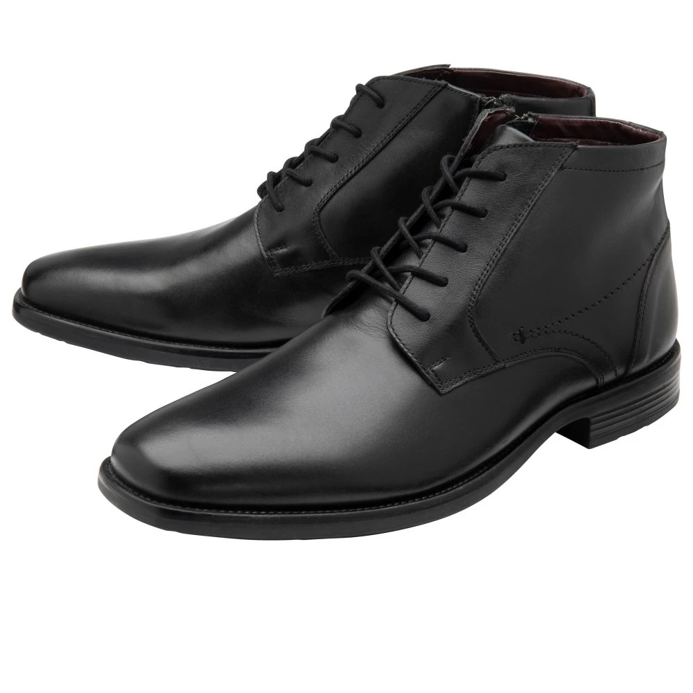 Tailored pieces and smart-casual looks pair well with the men’s Kade ankle boot from Lotus. Constructed from leather, this men’s black lace-up boot exudes minimalism charm to make it a strong silhouette that is highly versatile.
