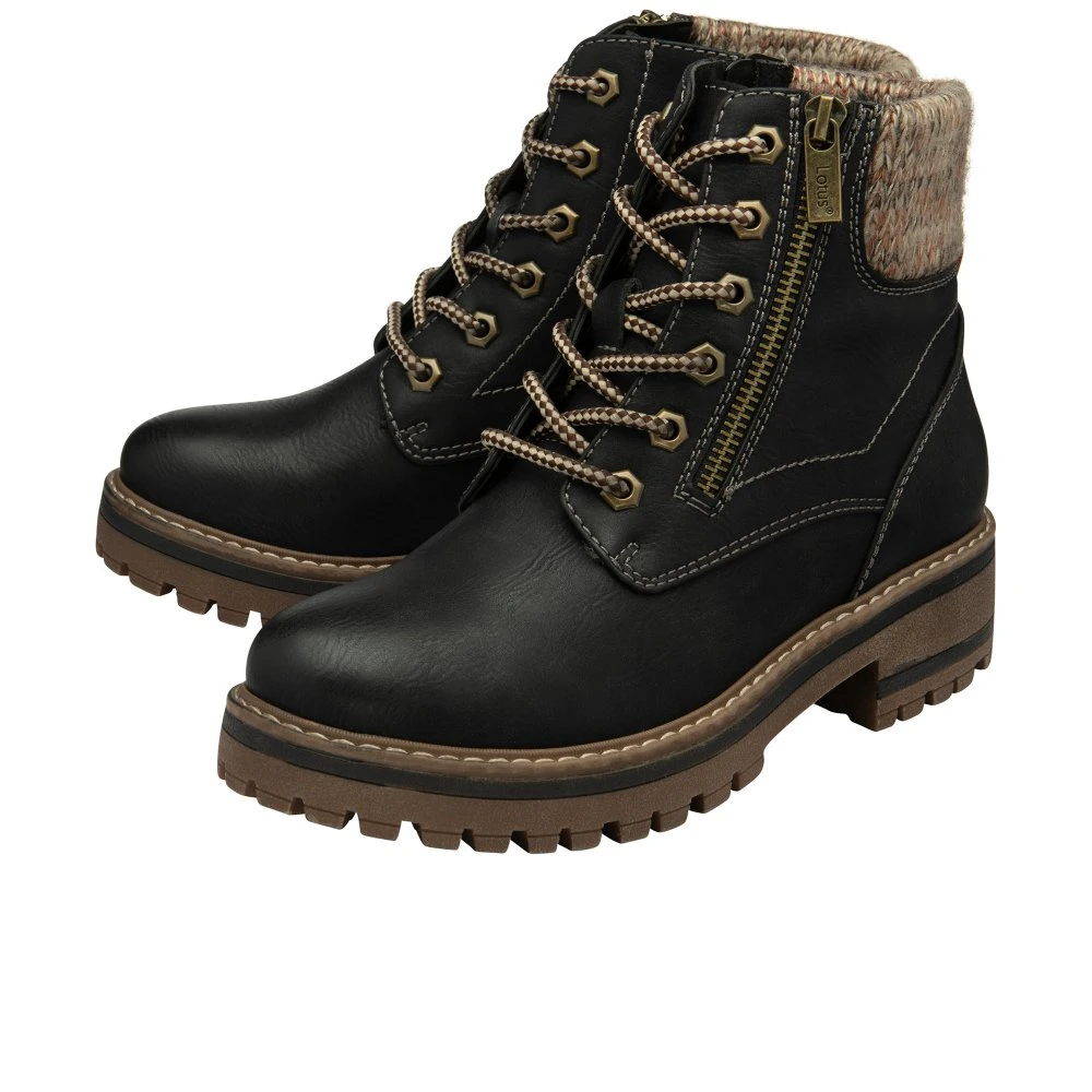 Embrace the outdoor look this season with the Lauryn lace-up ankle boot from Lotus. Contrasting against the imi-suede upper is a knitted ankle collar, whilst the metal eyelets, the hiker laces and the heavy cleated sole unit ensure that this casual style is a chic way to wear the hiker inspired look.