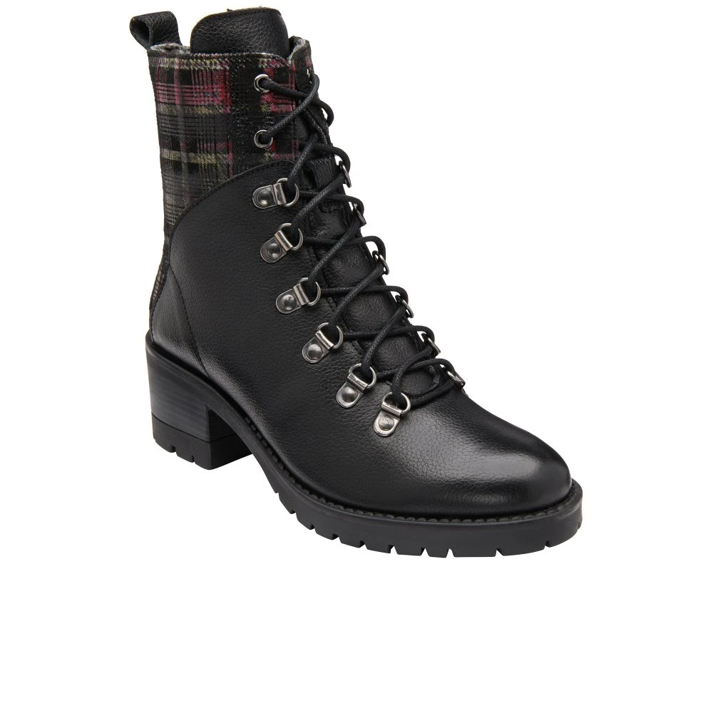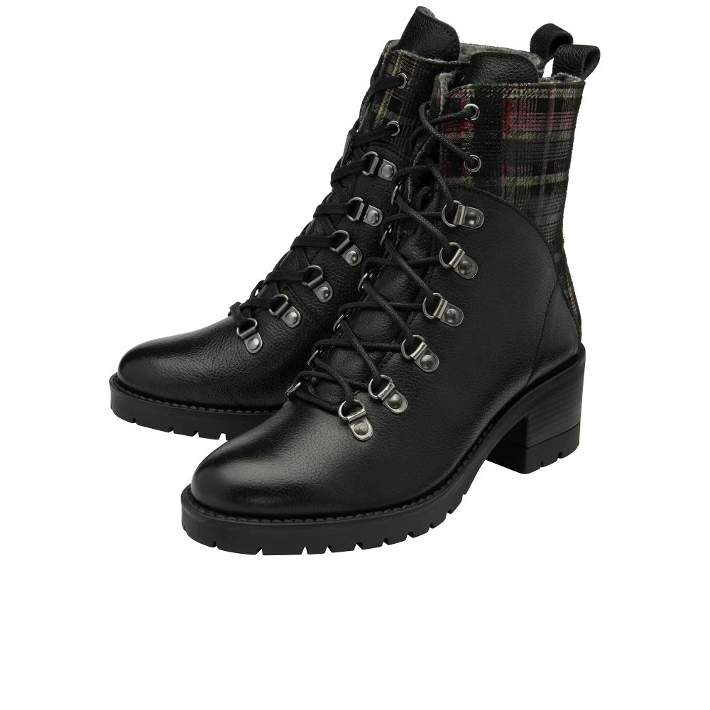 The Lotus Litchfield lace-up boot is highly functional and exceptionally easy to style! Showcasing traits from the popular walking boot look, this ladies’ boot boasts D-ring lacing, a 6cm block heel, a heavy cleated sole unit and for added comfort and warmth, a faux shearling part lining has also been incorporated. With the top quarter of the boot finished with a plaid textile that contrasts against the rest of the leather upper, this Lotus women’s boot certainly has distinguished features that make it an everyday staple!
