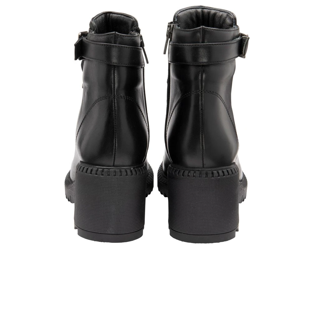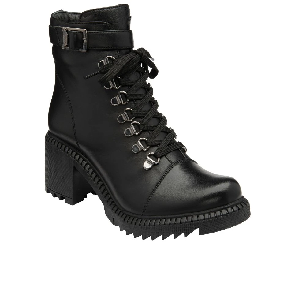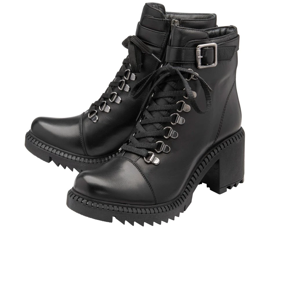 The women’s Lotus Virginia ankle boot has evolved from the popular walking boot trend. As with typical walking boots, this striking new design features D-ring lacing, but it is the wrap around buckle feature, the chunky cleated sole and the 7.5cm block heel that gives this Lotus women’s leather boot a new season spin.