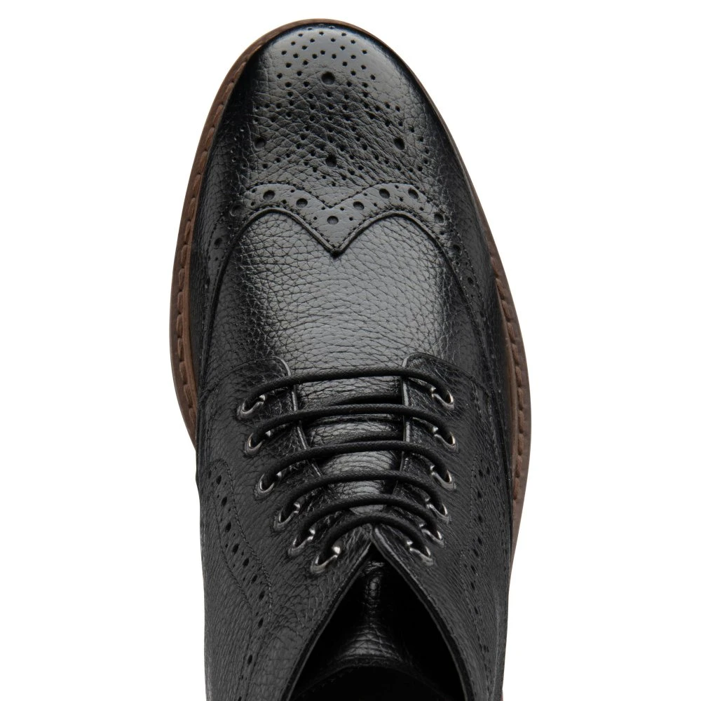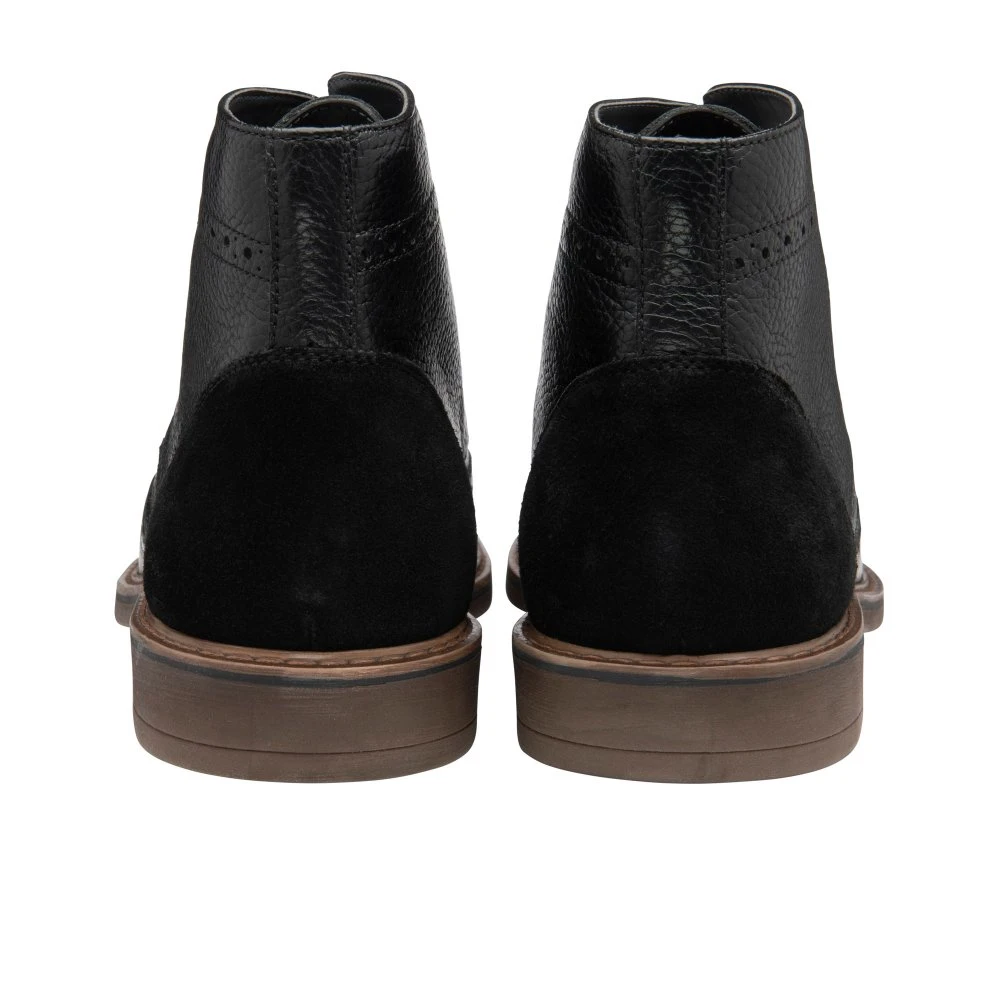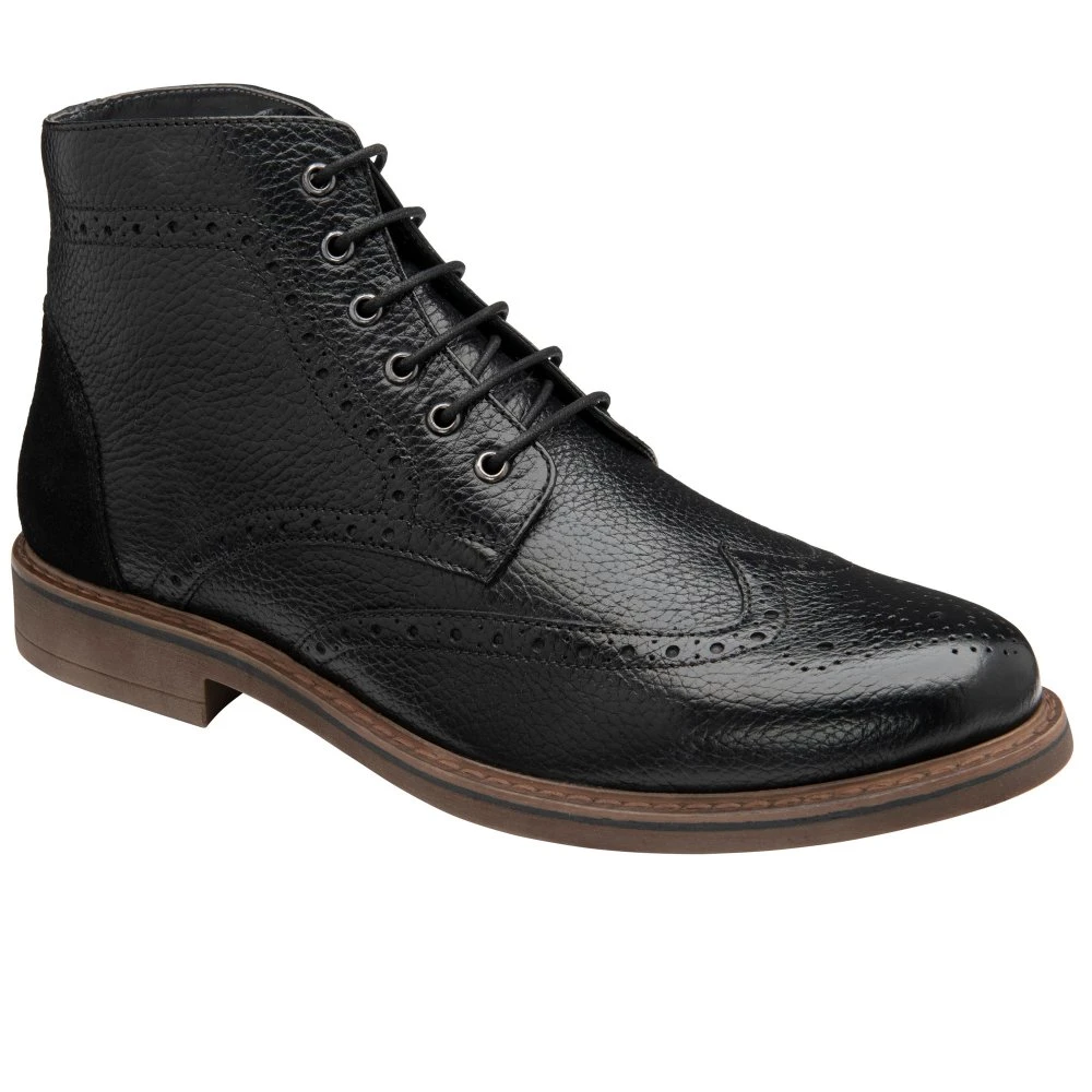 Add an on-trend finish into your looks with the Magnus leather boot from Frank Wright. This lace up boot features brogue and wingtip detailing, a contrasting suede trim on the ankle and a heel pull loop can be found to help get this stylish boot off with ease. Team this Frank Wright boot with jeans and a cardigan for a stylish winter look.