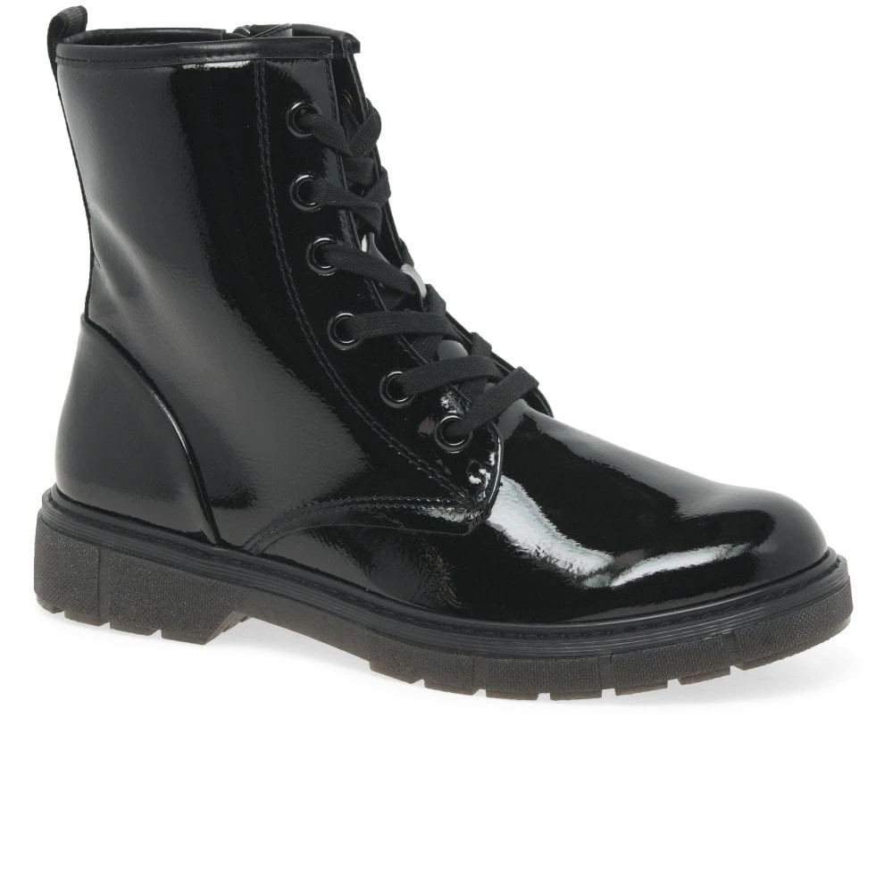 A sleek and shiny ankle boot, the Knight from Marco Tozzi are crafted from synthetic materials with textile linings ready for you to slip your feet into. Fasten securely with a side zip and also lace up at the front for a best fitting with a synthetic sole supporting underfoot.