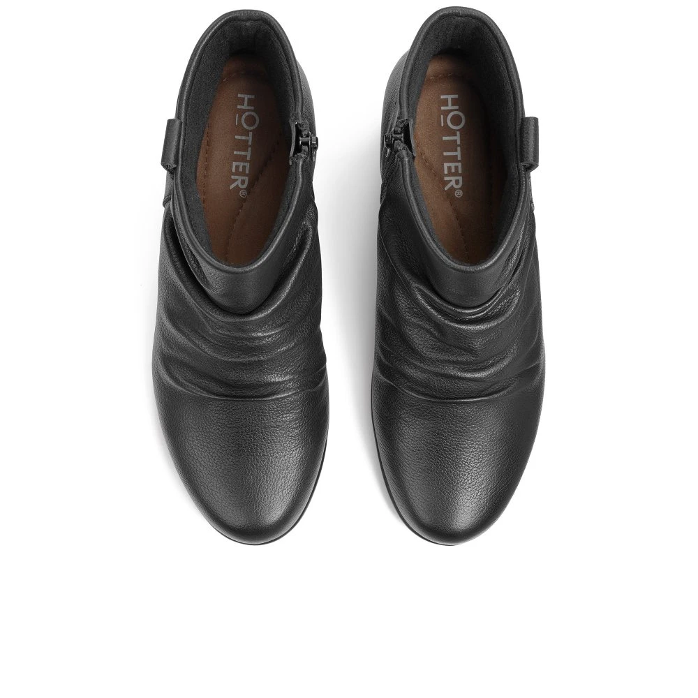 Oriana is the brand-new ruched tumble ankle boot with elegant touches of formal class and timeless femininity. Available in classic black and brown, with a ruched leather upper, inside zip and textile linings for all-day comfort.