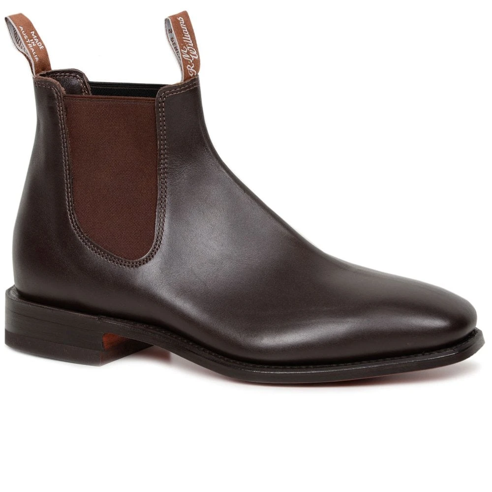 With a chiselled toe and contrasting sole, the R.M. Williams Classic Craftsman men’s Chelsea boots present a sleek and luxurious style – perfect for smartening up your casual attire. Yearling leather uppers sit upon leather soles which are constructed with a Goodyear welt meaning a cork footbed has been used to create a customisable fit. A micro fibre sock lining absorbs moisture well, allowing feet to stay dry and helping them o breathe. Crafted from the classic craftsman last, the boots feature front and rear pull tabs with elasticated side gussets aiding natural movement. Additional features incorporated into the men’s Classic Craftsman Chelsea boots from R.M. Williams are poron insoles, padded heel linings, and a fibreglass, airport-friendly shank which supports the arch of the foot.
