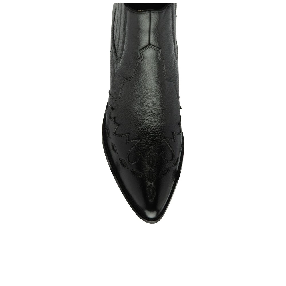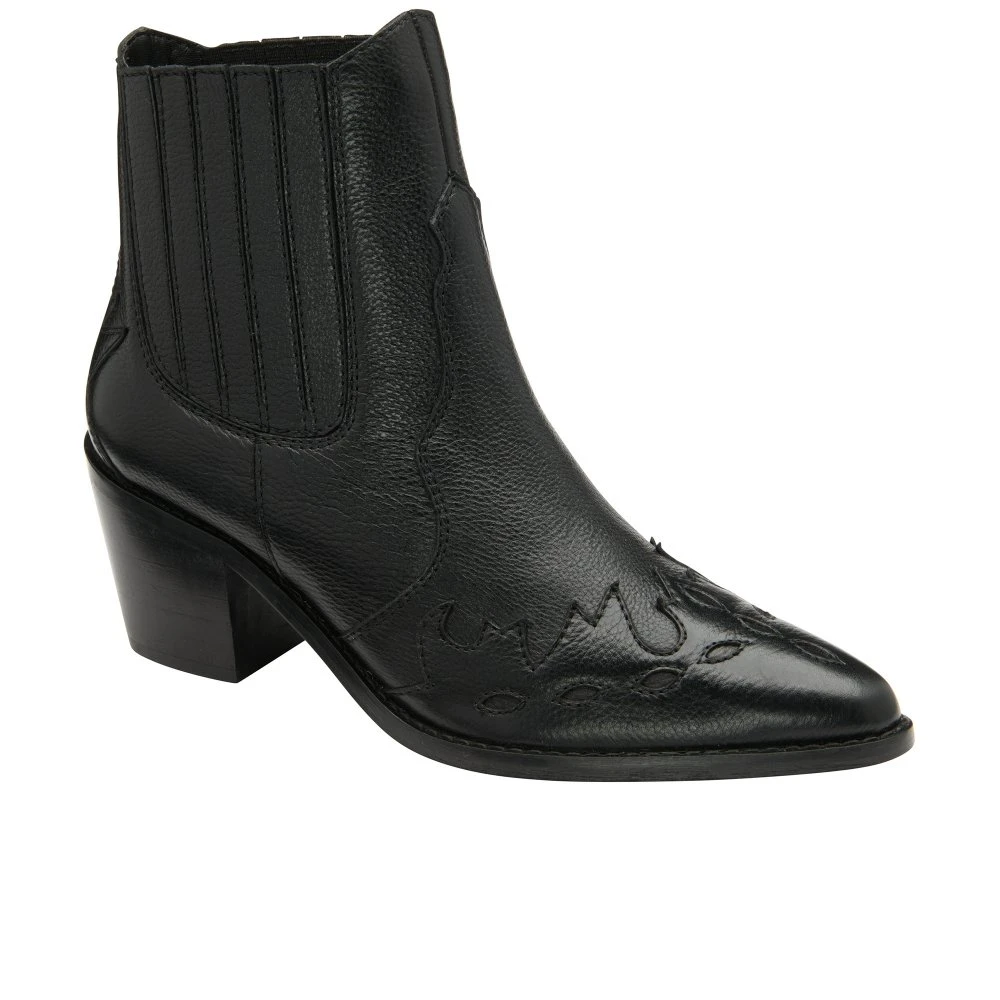 Kick into the western trend with the Galmoy ankle boot from Ravel. The sumptuous leather upper, the decorative overlay, and the concealed elasticated panel gives this Ravel black ankle boot a distinctive finish that makes a bold statement.