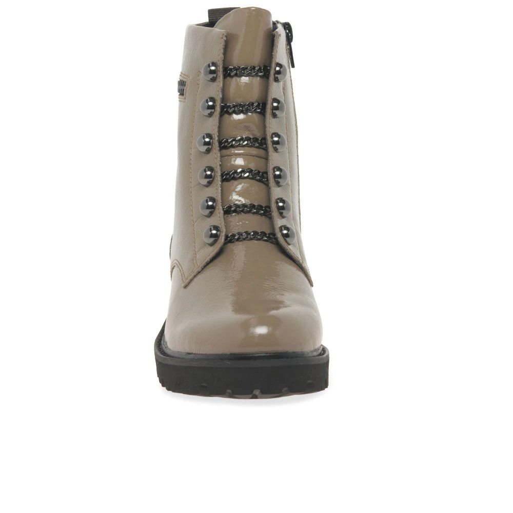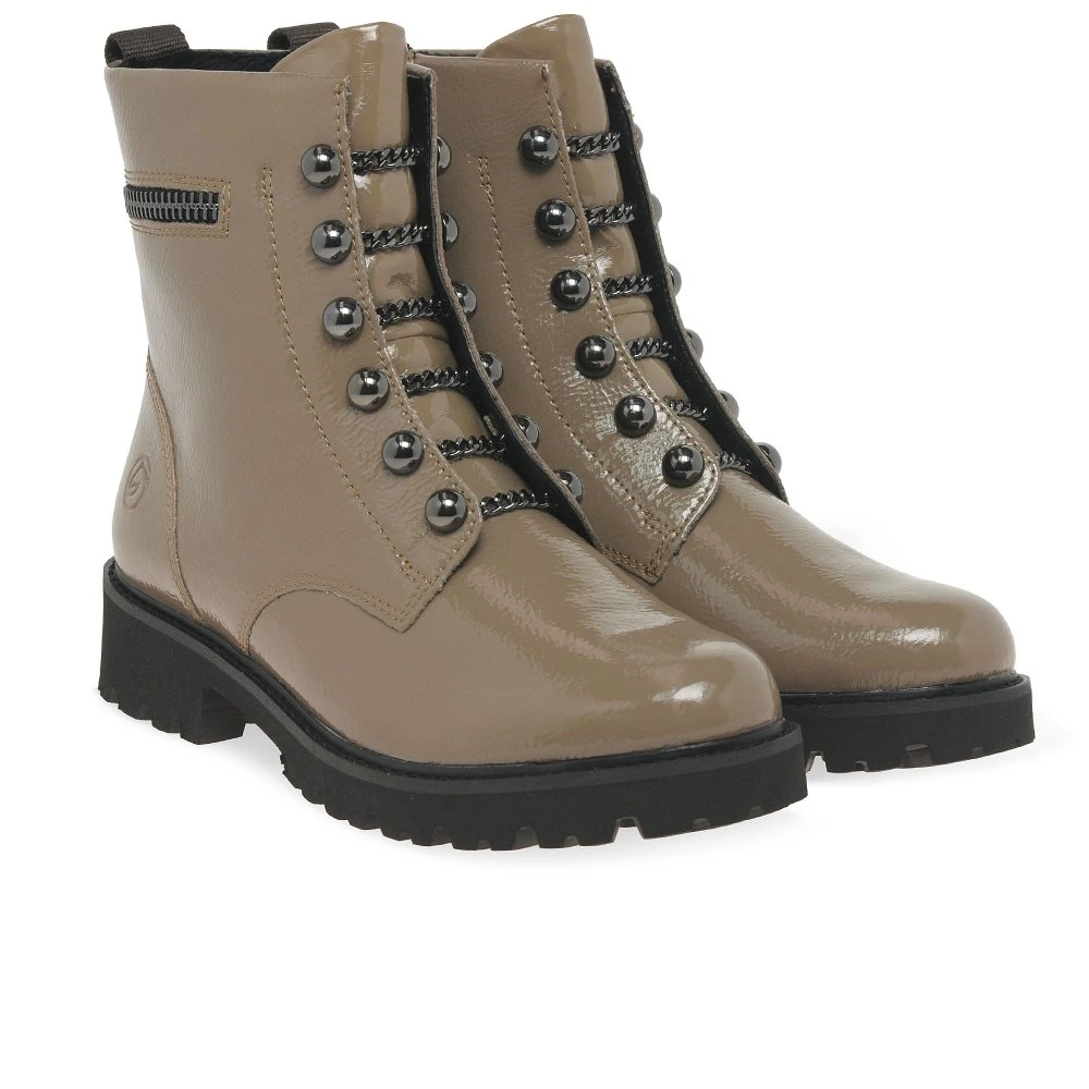 A highly on trend pair of women’s biker boots, the Remonte Cable are so versatile thanks to their supple leather uppers and statement black chain detail – a great alternative to faux lacing. Imitation zippers feature around the back of the boots for added edge, with a thick cleated sole sitting underfoot. Opting for snug textile linings, these boots are sure to be a popular style this season.