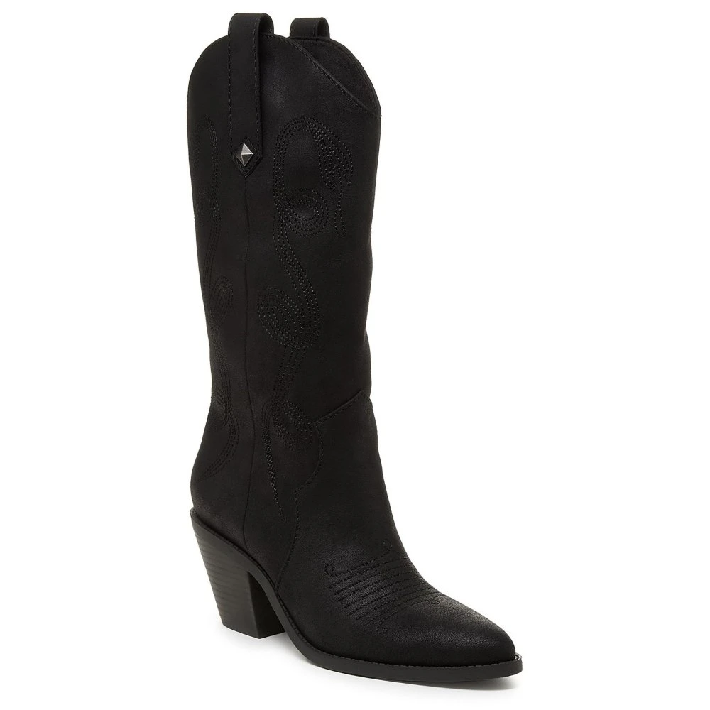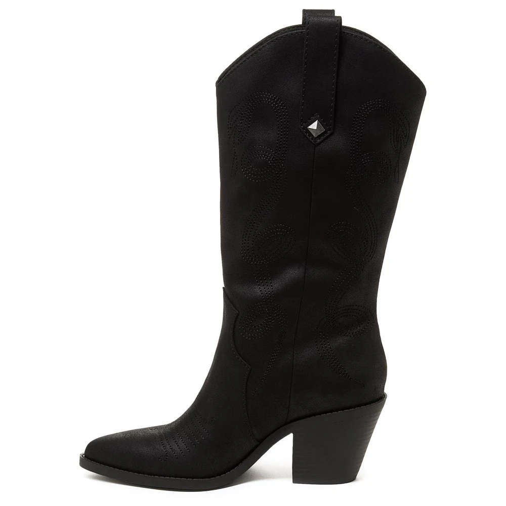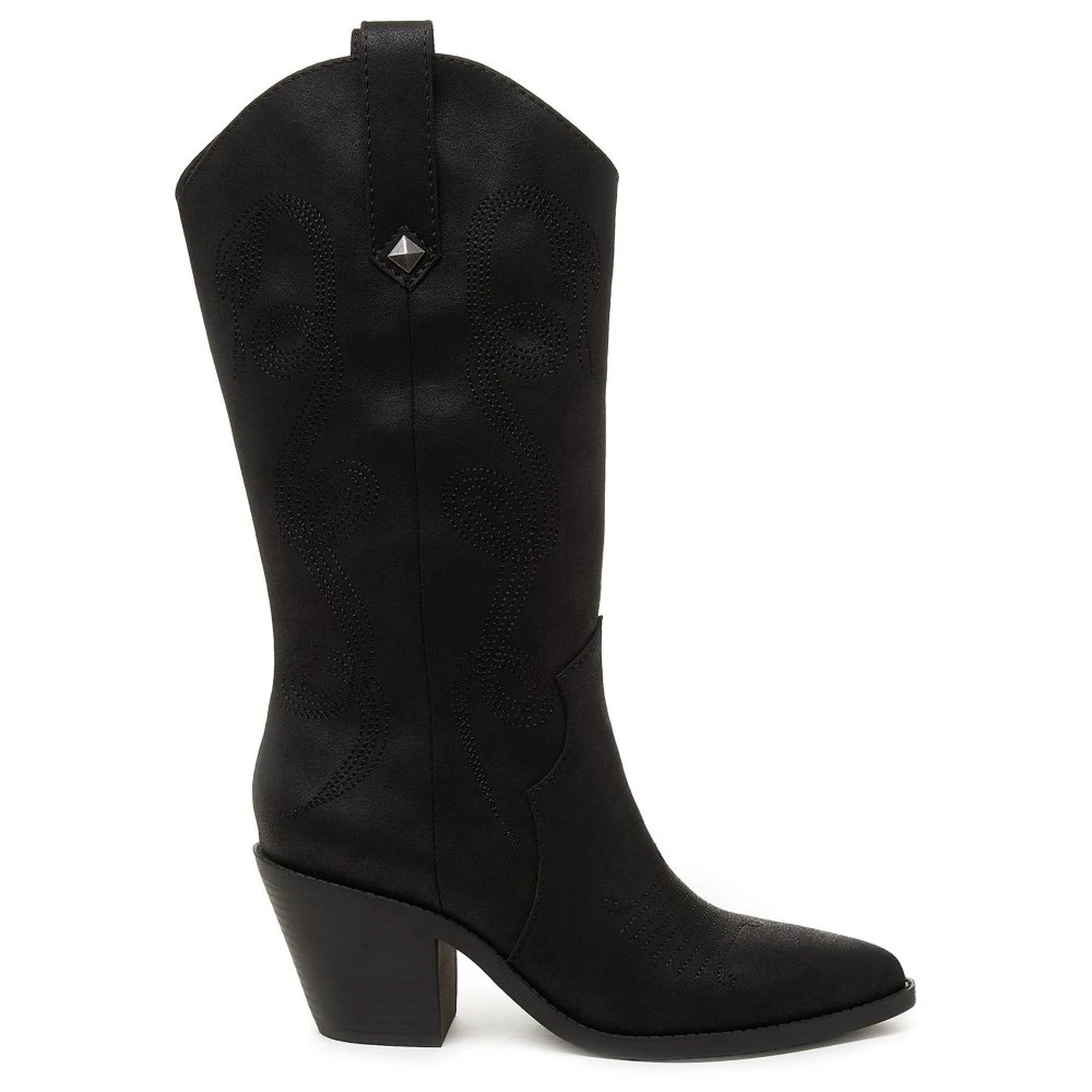 Channel your inner outlaw with Rocket Dog’s Feria Black Western Boots. Pair these faux leather boots adorned with metal embellishments with black skinny jeans and a plaid shirt for a cool, western look. Go wild, ladies!