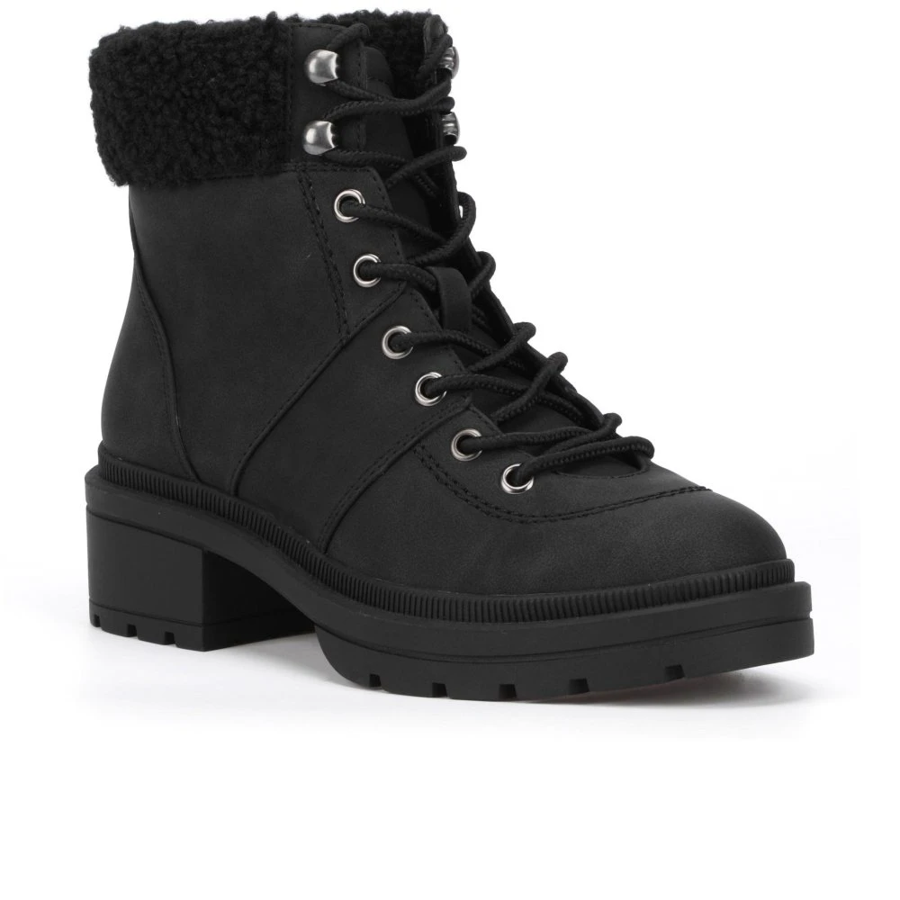 Temperature dropping below zero? Not a problem. Keep toes toasty in these black lace-up ankle boots.