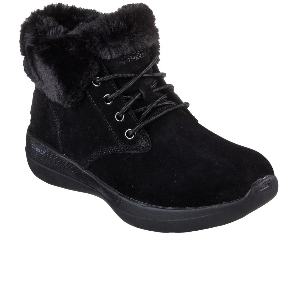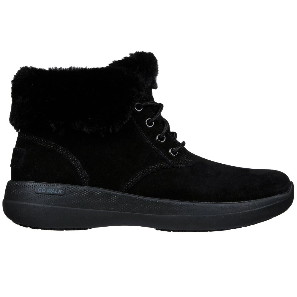 Stay cozy throughout the season in surefooted comfort with Skechers GO WALK Stability Boot – Comfy Days. This casual cold-weather lace-up boot features a 3M Scotchgard treated suede upper with faux-fur trim and a Skechers Air-Cooled Goga Mat insole